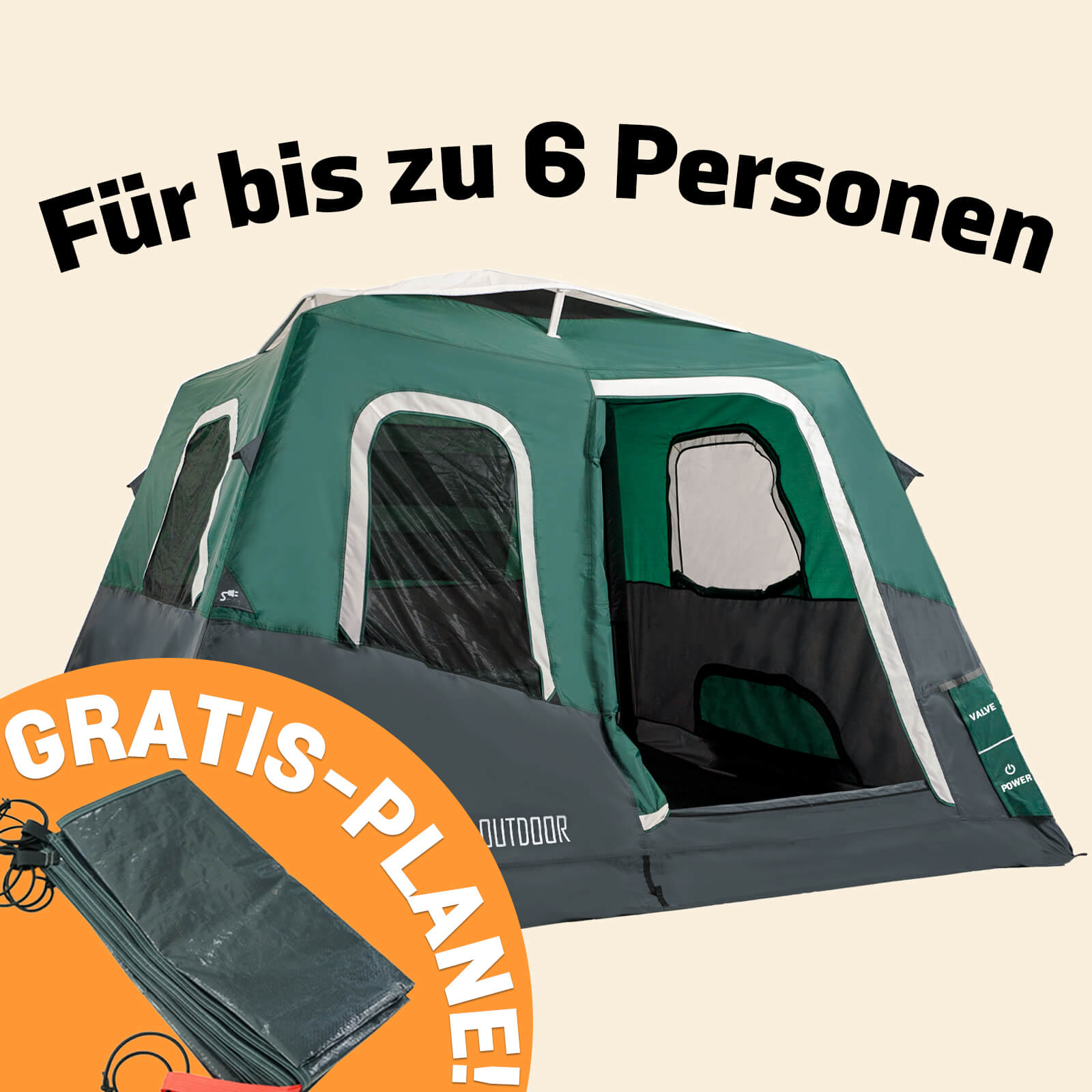 Großes 2-Schritt-Kabinenzelt + KOSTENLOSE Camping-Plane (für bis zu 6 Personen, DE).